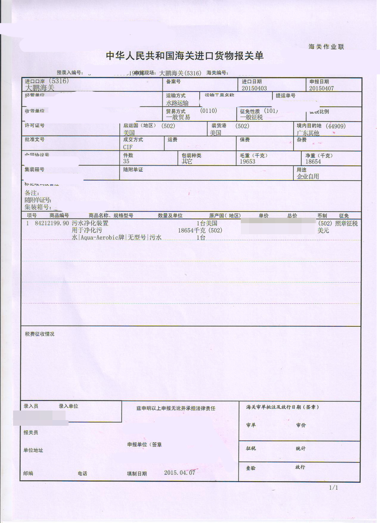 【文章標題】:污水凈化裝置進口報關案例 http://www.8331189.com/lm5/108.html 轉載請注明出處