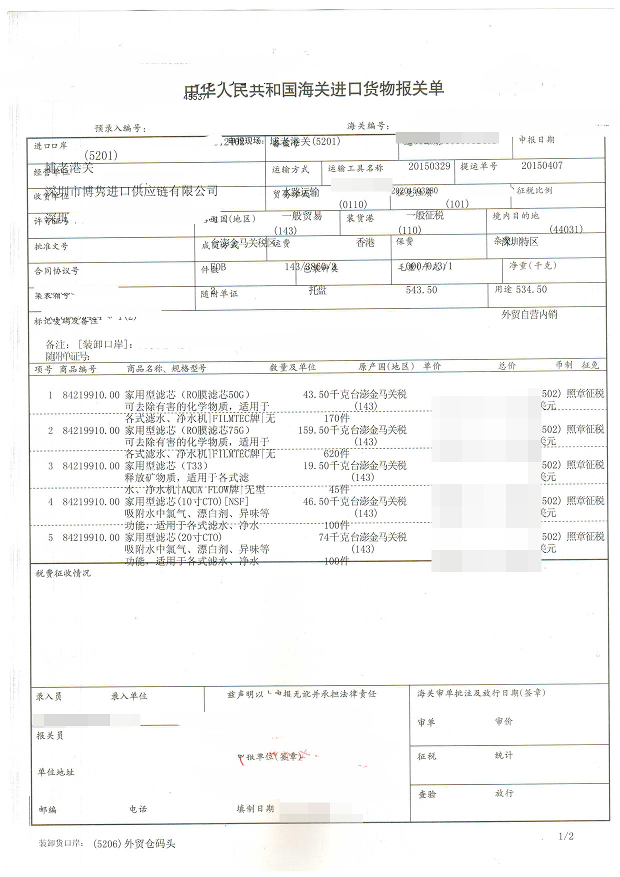 - 濾芯進口報關案例