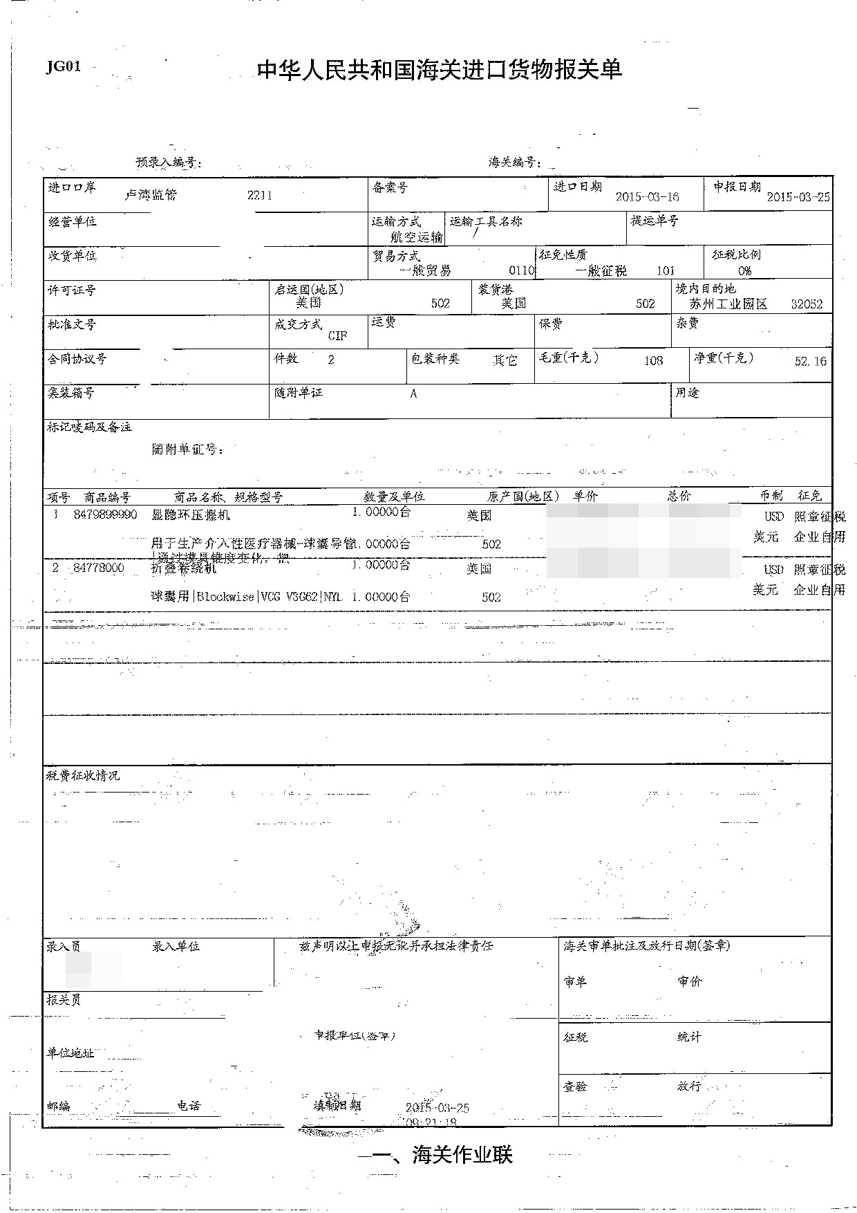 三、顯隱環壓握機進口報關案例展示